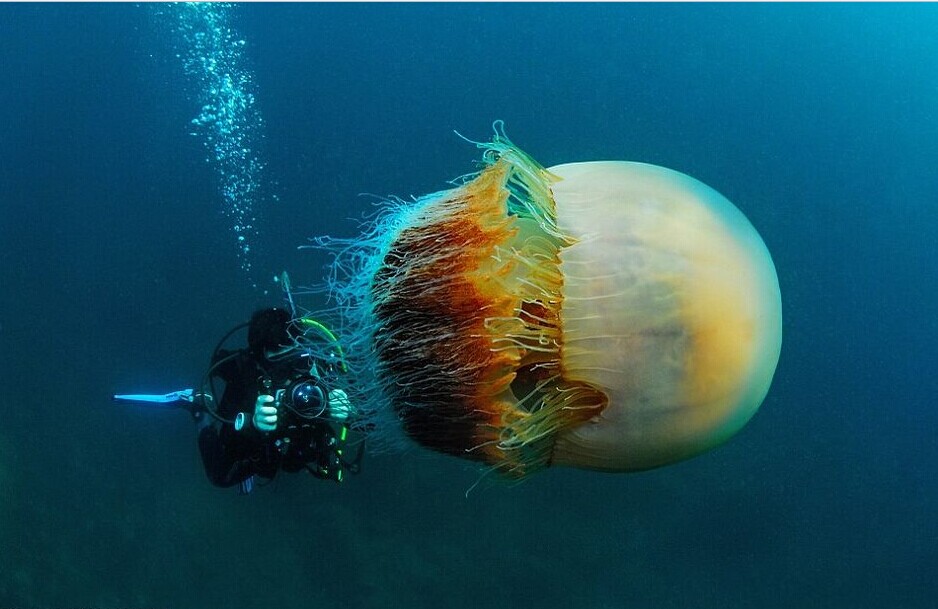 她拍摄的这只水母直径约4英尺9英寸(约1.5米),一般“野村水母”可以生长到直径6英尺6英寸(约2米)。